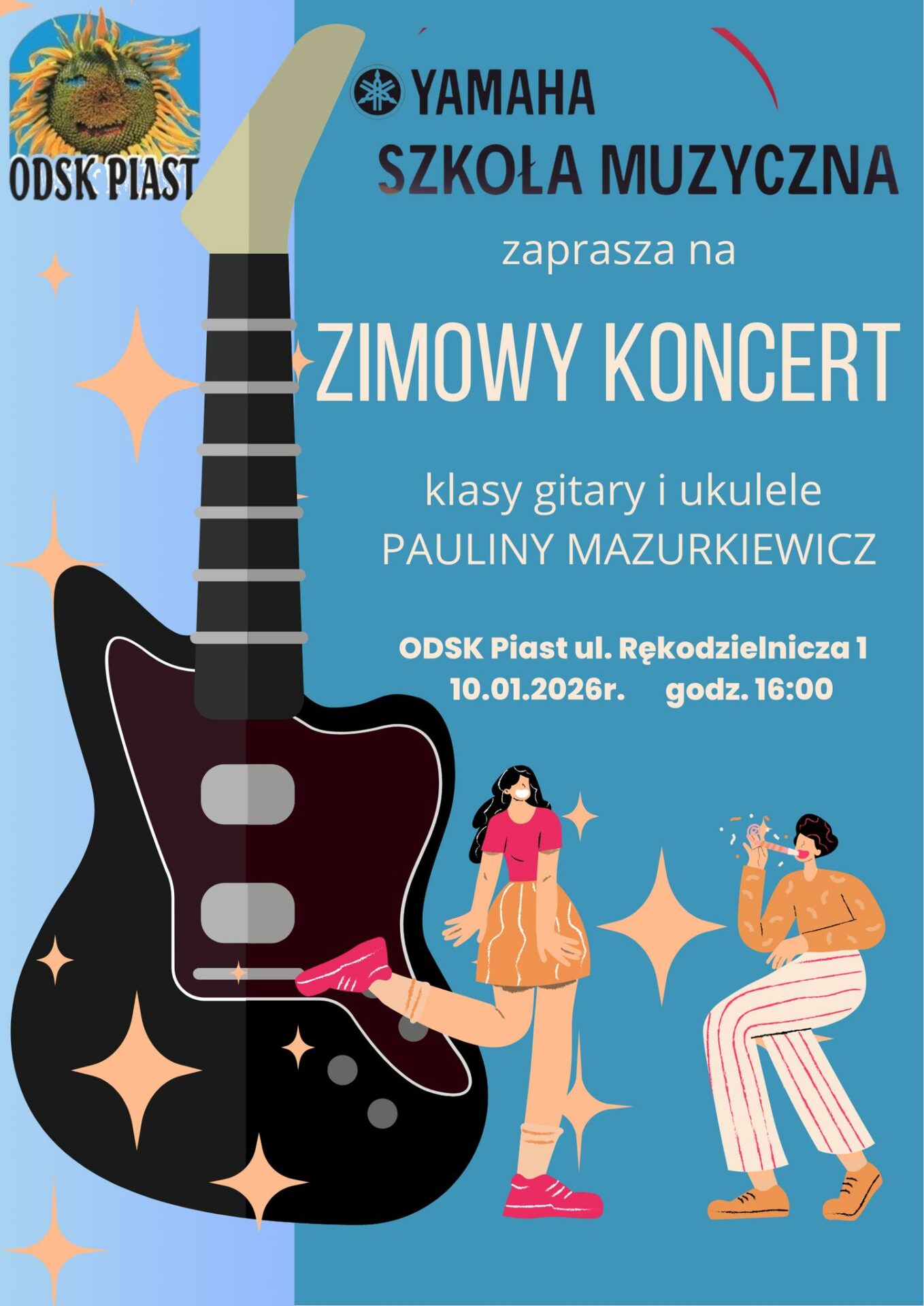 W sobotę 10.01.26 popołudniu, o godz.16.00 zapraszamy prezentację sekcji gitary Pauliny Mazurkiewicz Yamaha Szkoła Muzyczna Wrocław. Wstęp wolny!